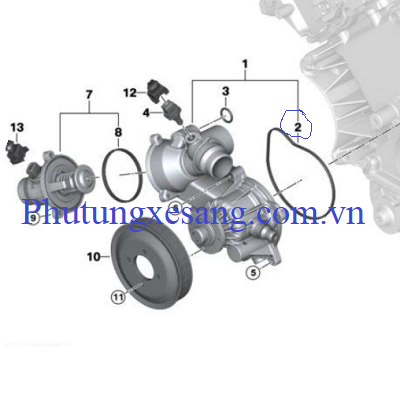 Gioăng bơm nước xe Phantom BMW X5 540i 545i 550i 650i 735i 740i 745i 750i 760i E53-11517508535