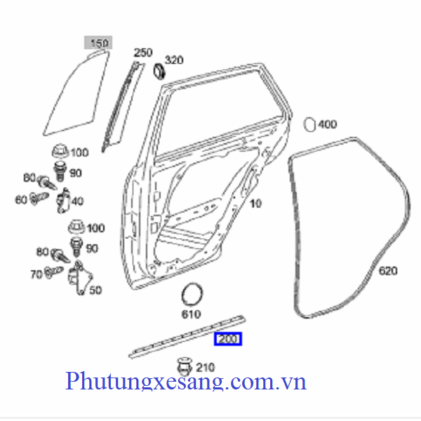 Nẹp dưới cánh cửa sau bên trái Mercedes ML320-A1646904962, ML350 ML450 ML550 ML63 AMG 2007-2011-1646904962 được bán tại phutungxesang.com.vn