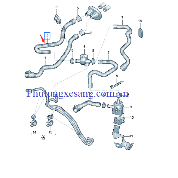Ống nước Audi Q5 L4 2011-2012 2.0T-8R0819373L, 8R0-819-373-L được bán tại phutungxesang.com.vn